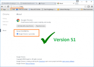 1. Update Google Chrome browser to version 51. To do this open your Chrome browser and navigate to chrome://help and install any updates.